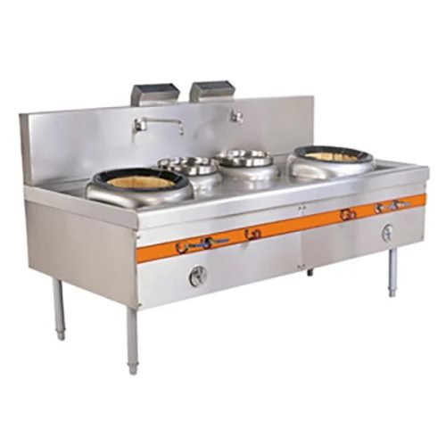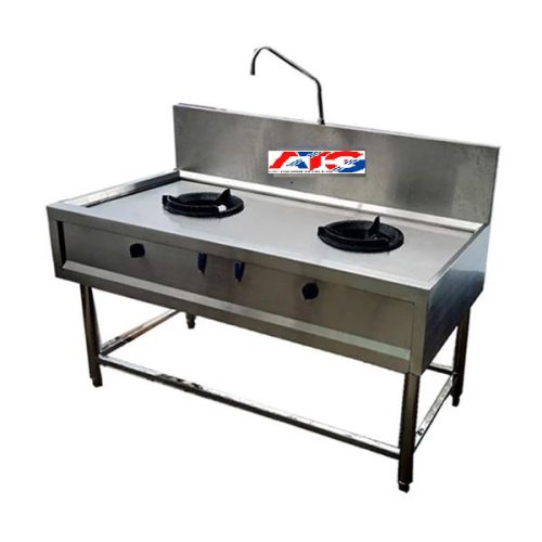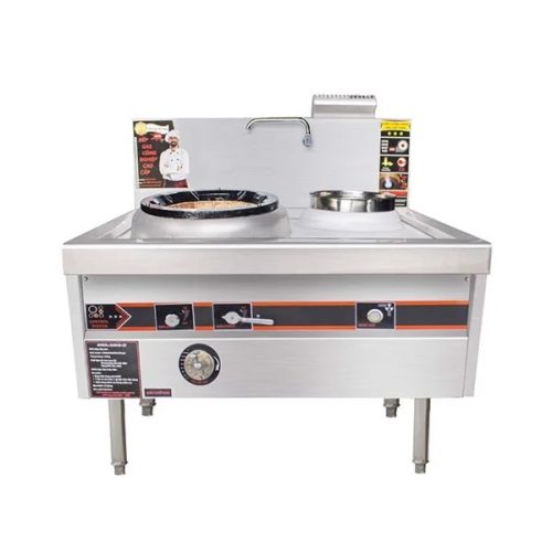 Bếp công nghiệp 2 họng được tang bị với 2 họng đốt và 2 kiềng bếp dùng để xào nấu, người dùng có thể sử dụng 1 miệng hay đồng thời 2 miệng để nấu món ăn, phục vụ với tần suất lớn hơn so với bếp đơn, được sử dụng phổ biến ở các nhà hàng, quán ăn lớn cần nhiều món, bếp ăn tập thể.