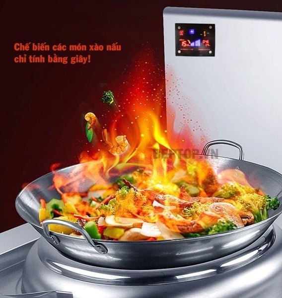 - Bếp từ 15kw mặt lõm hoạt động không gây tiếng ồn, không phát sinh ra lửa, khí nóng cải thiện môi trường làm việc hiệu quả.